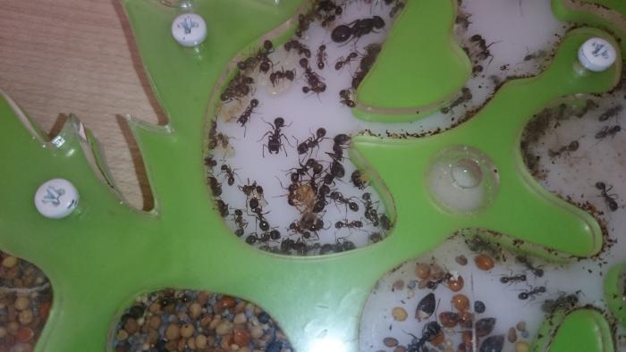 nicksqr без обид. Опыт не приходит от количества прошедших через руки колоний, а вот при содержании одной колонии в течение многих лет, причем от матки до нескольких сотен, можно и про опыт что-то сказать. Гордей на самом деле может и забывает регулярно подливать воду в увлажнение. По моему мнению жнецам не требуется высокая влажность. В формикарии из пеноблока (размеры 30х12х26 см) раз в неделю заливаю примерно 5 мл в увлажняющую камеру. Камеры с зерном расположены всегда вдали от камеры увлажнения, т.е. в самых сухих местах. В природе, несмотря на зерноядность, жнецы не гнушаются и насекомыми. Пару раз в неделю я им обязательно даю сверчка или таракана