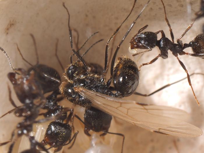 У наших жнецов в прошлом году погибла матка. Сейчас, в вольере на арене сидит новая Королева. Планировали выпускать уже. но так получилось, что я некоторое время не занималась муравьями вообще, за ними ухаживал сын. Только вчера обнаружила, что ... Озадачилась, можно ли выпускать матку...