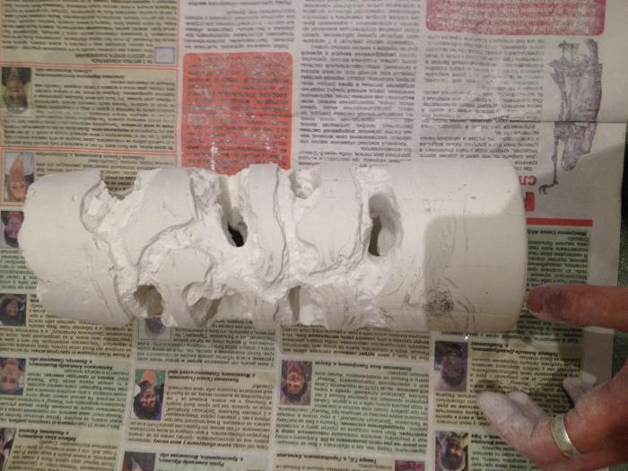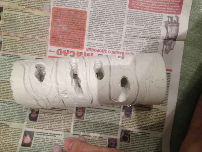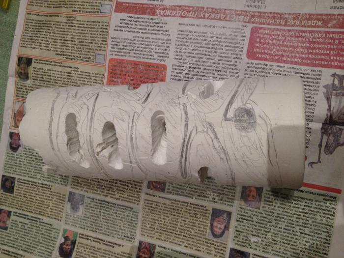 подсветку совсем тускленькую хочу сделать, что бы было едва заметно))) забыл сфотографировать как получилось сейчас, в принципе можно на словах объяснить, сейчас все камеры вырезаны (выглядят примерно так же как нижние на фото выше). это далеко не окончательный вариант, ещё многое предстоит сделать) с пластилином действительно были бы те трудности что описал likeman, но учитывая то что банка в которой заливал лопнула, снизу до самого верха и вывалилось дно, это можно было осуществить. но... заливал я впервые, не знал как правильно разводить (хоть и смотрел много видео), да ещё и миксер для бетона оказался на даче (размешивал плоским напильником :D), в общем гипс я уже твердоватый засовывал в банку и утрамбовывал. получилось не так плохо как казалось бы должно получиться. единственно вверху было много полостей. да и банку которая осталась можно ещё раз использовав, только скотчем обмотать)