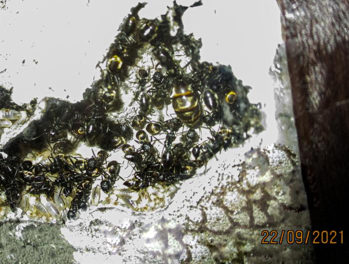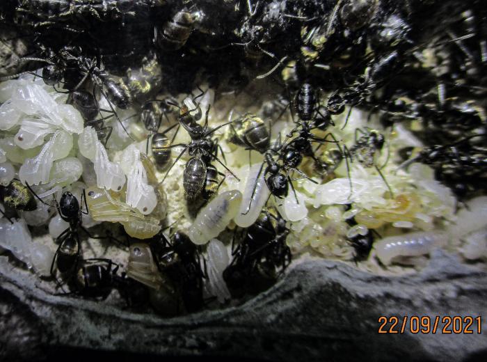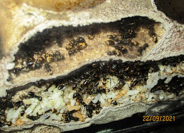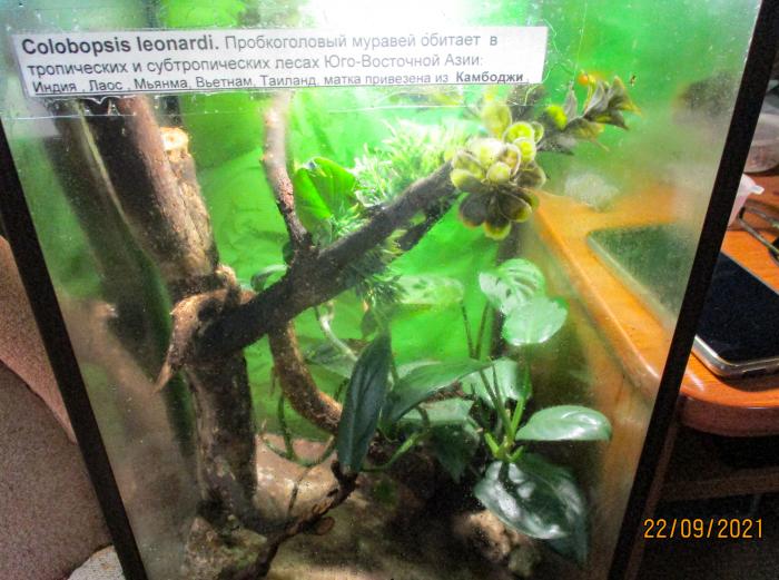 К сожалению история семьи Colobopsis leonardi этой весной (2023) закончилась. Причем самка почему-то перестала откладывать яйца, воспроизводство прекратилось, рабочие постепенно стали умирать. Попытался устроить диапаузу с с уменьшением влажности в гнезде, изменением рациона. В конце концов даже самку с оставшимися 10-15 рабочими переселил в пробирку-инкубатор. Ничего не помогло. Летом gotya прислал мне 2 крылатые самки, пойманные его супругой во Вьетнаме, но они оказались неоплодотворенные.