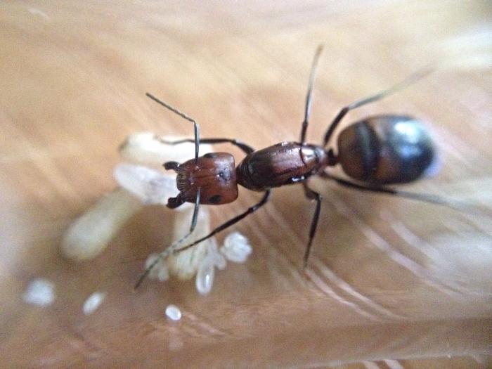Был у никорабенсисов странный муравей, он постоянно сидел в сторонке, два рядом с маткой и расплодом, а этот один, у ватки. Когда переселял в другой инкубатор, он сразу убежал в другую пробирку и сидел в ней на наногубке один, другие к нему не шли, переселил их вручную, этот стал сидеть у ватки, подальше от всех, а вчера умер этот изгой. Интересно, что могло повлиять на такое поведение, когда переселял заметил мураша с половиной одного усика, подумал что из за брака его выгнали, но нет, тот у которого пол усика нет жив и трётся у матки...