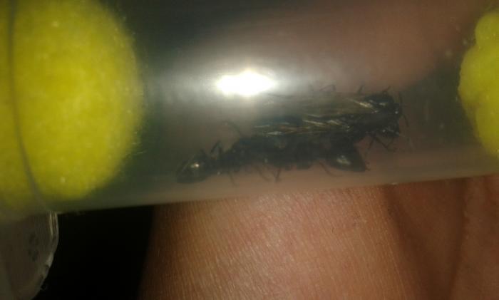 на днях увидел этих муравьев в дереве я думал у них будет лет т.к крылатые беле не в дереве я взял пару крылаты и двух мурах , наблюдая за муоавьями которые остались в дереве несколько дней лета так и не было а они все вылазили и залазили(крылатые) в размерах оч крупные матка 13мм солдат 9-12, на фото 11 рабочий от 6мм до 9