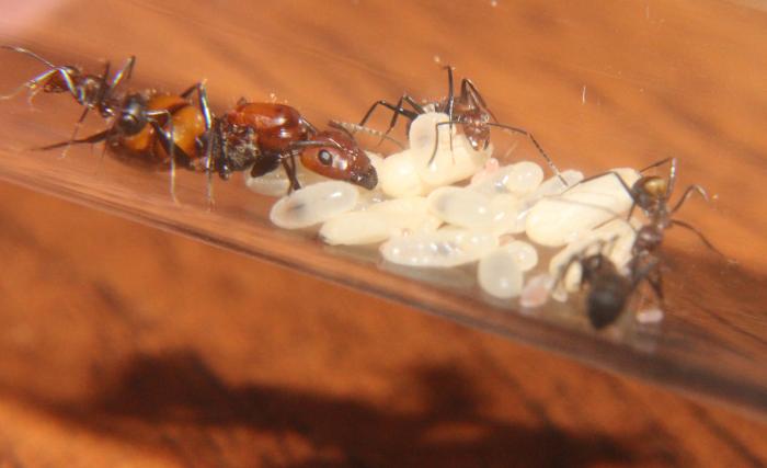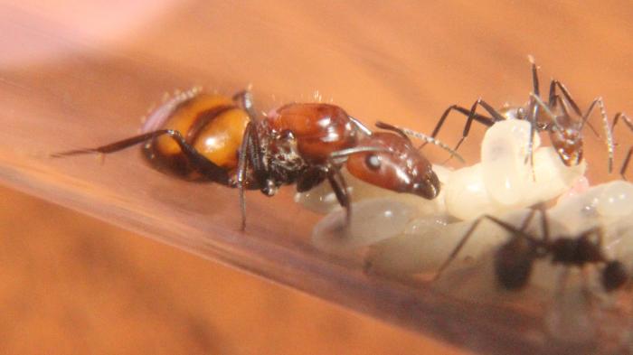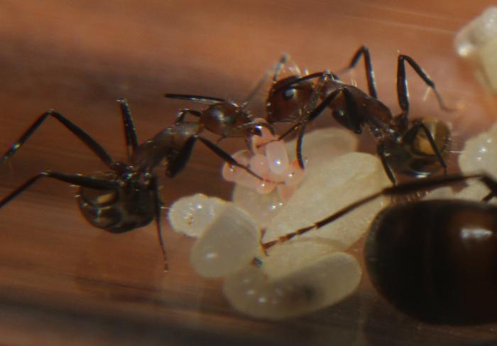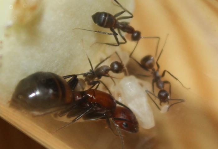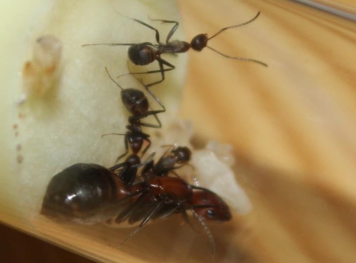 А так мурахи питаются туркменами, очень охотно отрывают им ноги и все остальное, щас пытаюсь наловить дрозофил и покормить ими. Единственно на арену выходят не охотно днем их там редко можно увидеть, и не всегда получается посмотреть расправу над тараканом, скоро колония подрастет и думаю будет смелея.
