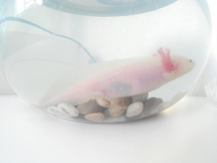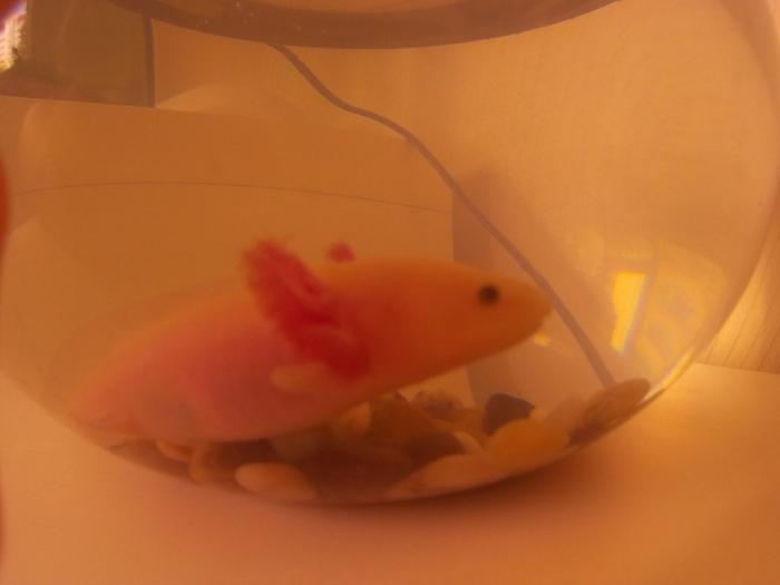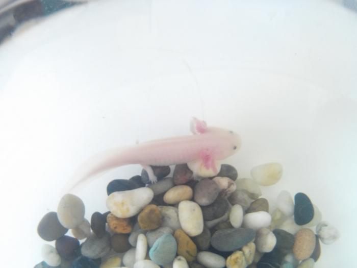 Эта ми-ми-мишка, судя по рассказам некоторых товарищей - доминирующий хищник общего аквариума (в котором аксолотлей потому и не рекомендуется держать). Глотает рыб и всё, что подходит по размеру. Так что это не няш-мяш, это суровый убийца.