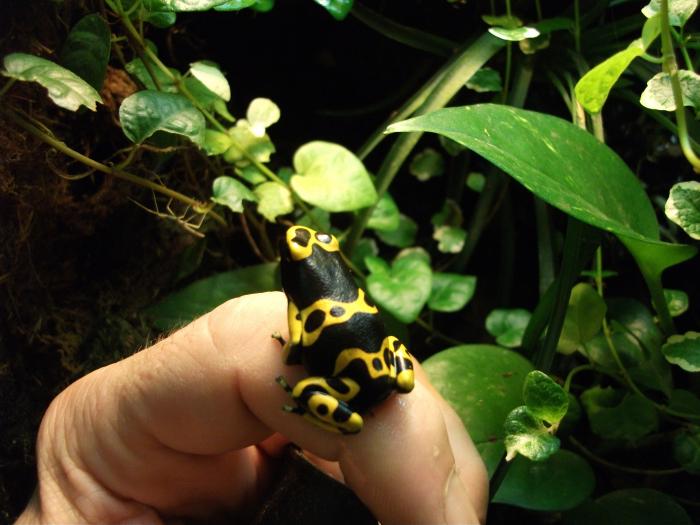По предпоследнему фото. В прошлогоднюю летнюю жару у мантеллы погибла самочка. Оставшегося самца пересадил к древолазам энтони на время поиска подруги. Сначала древолазы его гоняли, но потом привыкли. Самку ему так и не нашел, в продаже одни самцы или безполые мальки, из которых, скорее всего, тоже будут самцы. Совместное содержание древолазов нежелательно, более сильный вид будет угнетать, объедать более слабый, а некоторые виды вообще агрессивные, могут и убить даже соперников (или соперниц) своего вида. Для совместного содержания важен подбор видов и большой объем террариума