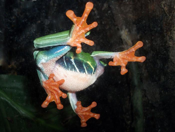 По порядку: голубой древолаз (Dendrobates tinctorius 'Azureus'), древолаз Энтони (Epipedobates anthony), красящий древолаз (Dendrobates auratus), полосатый листолаз (Phyllobates vittatus), священный древолаз (Dendrobates leucomelas), украшенная рогатка (Ceratophrys ornate), красноглазая квакша (Agalychnis callidryas), квакша обыкновенная (Hyla arborea), квакша арлекин (Phrynohyas resinifictrix), квакша жабовидная (Trachycephalus nigromaculatus), золотая мантелла (Mantella aurantiaca), веслоног шероховатый ( Theloderma asperum ).