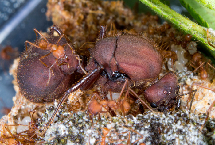 не перестаю удивляться разительному полиморфизму матки и рабочего! Все время терзает ощущение что на какой то фотки но и вылезет из тунеля здоровенная голова родного мураша, а вся мелочь на остальных - подкидыши-рабы)