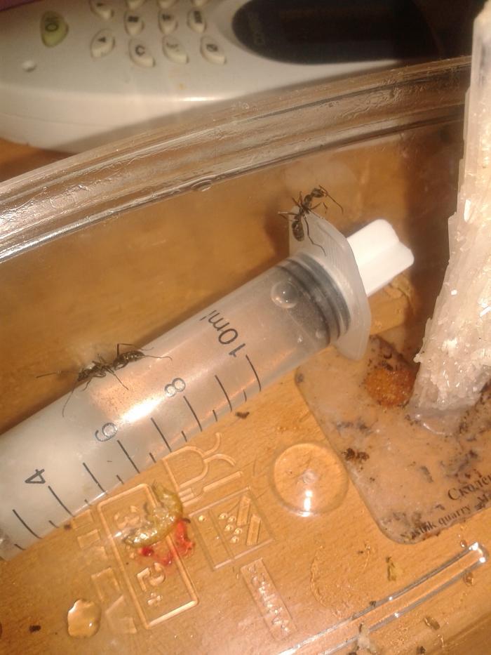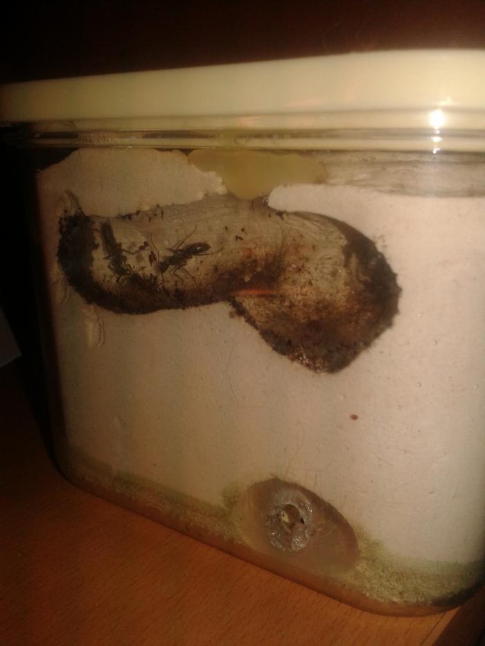 Забрал я колонию в воскресенье. Вчера же был отлит новый формик. По опыту местных блогеров - для диакам лучше делать горизонтальный вариант, ибо мурашки требуют песка/гравия/кокса для личинок, коим и залепляют стекло в формике. Пока сохнет - думаю. Ибо есть аквариум от лазиусов, ныне безхозный который может служить прекрасной ареной, в него формик прекрасно встаёт вертикально. Можно расположить и горизонтально, но тогда нужно просверлить отверстие в аквариум... Наверно все же вертикальный. В конце концов вытащить его и положить рядом - всегда успею.