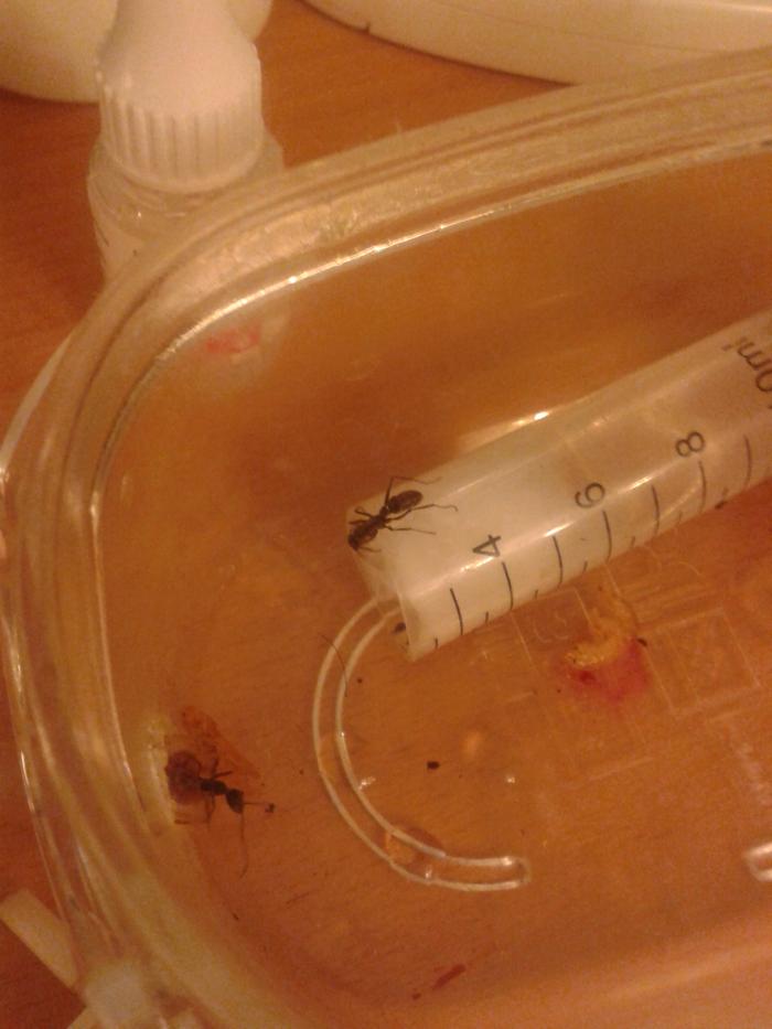 Подумав на токсичность формика - положил на арену пробирку. Мураши не перебрались.