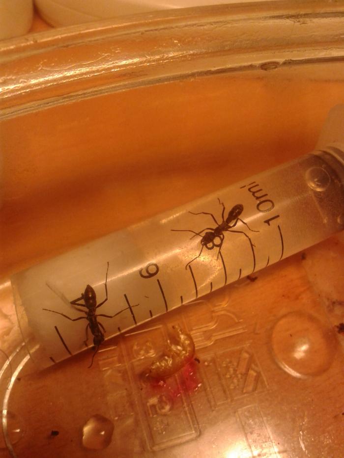 Вчера обнаружил в формике какого то недоразвитого тарика. Подумал что жена за время моего отсутствия на выходных подкинула мурахам нямки. Ан нет, при тщательном рассмотрении это оказался самец. Вот жеж Ж... Судя по блогам обладателей данного вида - мой гемергат мертв.