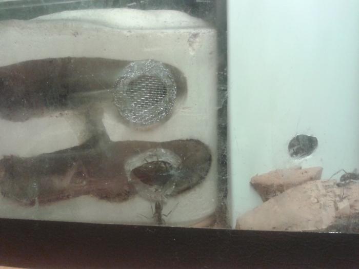 Вариант номер два - траванулись сверчком. пару месяцев назад у сестры так умер тарантул. В пятницу подкинул им нового сверчка, они его быстро оприходовали и затащили в формик. Вчера они его наконец начали вытаскивать, но видимо он упирался ногами (звучит как бред, но это так) и помурыжив его пол часа и отровав бошку, закопали гипсовой крошкой у входа.