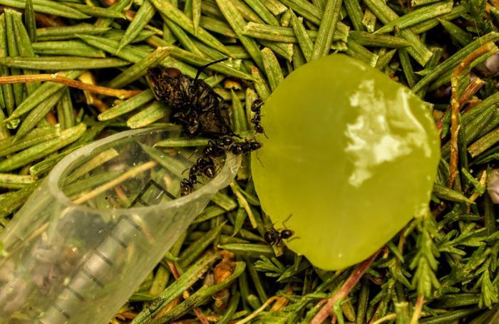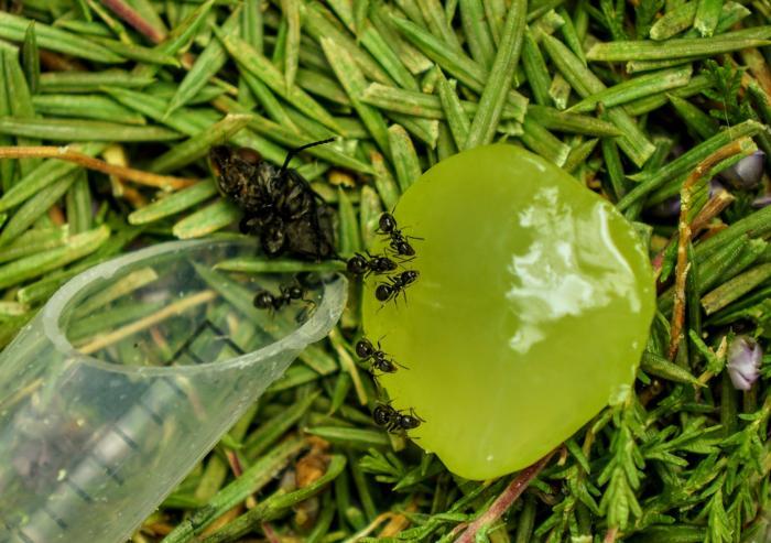 Можно авто кормилку соорудить, стаканчик с виноградом, дрозофила, сверху сетка, чтоб муха пролетала, а мураш залезть не мог...