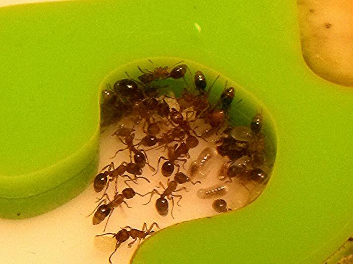 Мои дорогие мирмики были выпущены в саду . Они уже сделали гнездо и я их немного угощаю . Фото сделаю выходные