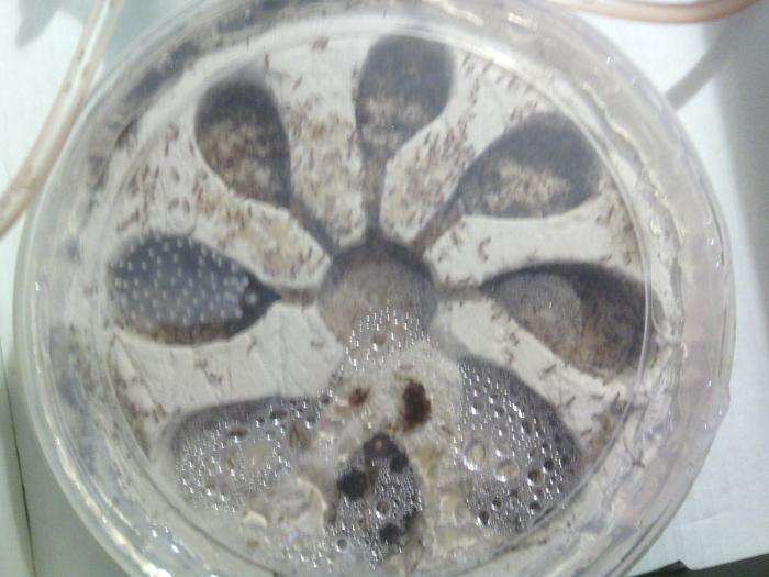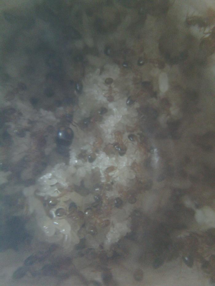 Огромное количество расплод, раз в 20 больше по объему чем взрослое население. Видимо молодые матки уже подключились к процессу, самци еще живы, наверное надеяться на созревание новых жен))) скорость роста колонии потрясает, особенно учитывая изначально малое кол-во особей. Им бы размер по боле и цены бы не было таким питомцам. Пы сы. Потеплело, на кухне появились "дикие" фараоны))) жона не верит что не мои))))