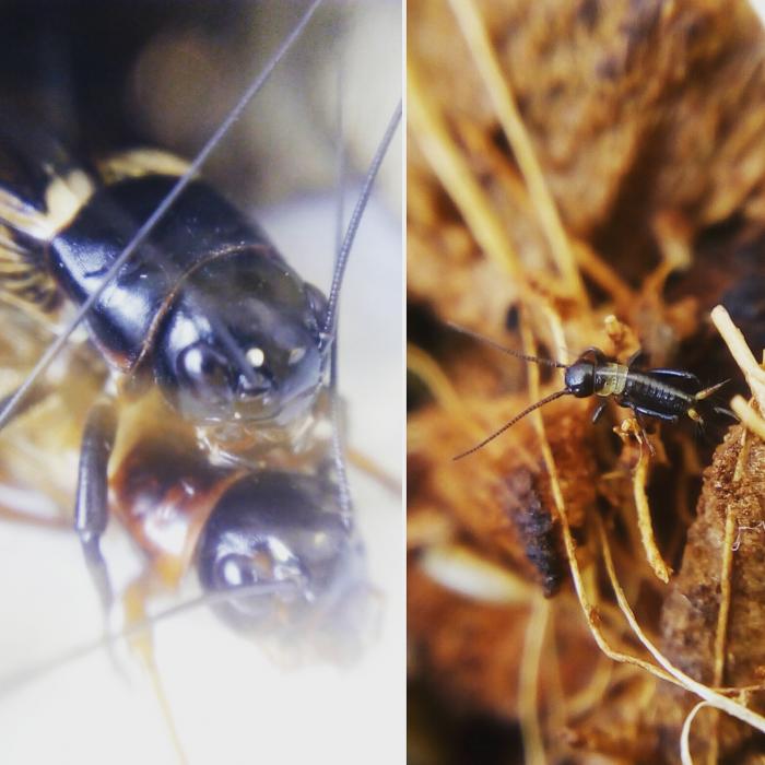Если потревожить, звереют, выбегают на арену и деловито грызут пинцет. Свежему таракану бодро обстригли ноги.