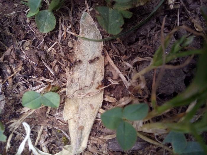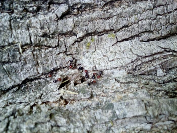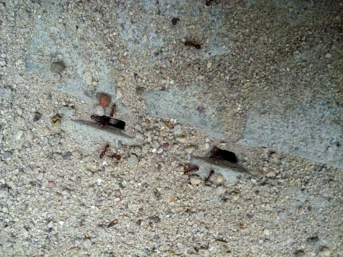 Верху крематогастери, они на каждом дереви здесь. А внизу кампус которий с ними бегал цепочкой. Размер как креми.