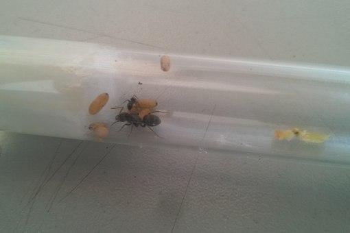 Штука в том, что автор идеи - индиец Mohamed Babu из Майсора, упоминает муравья-призрака - черноголовую тапиному, Tapinoma melanocephalum, мелкую инвазивную тропическую долиходерину, и у него именно она и есть -