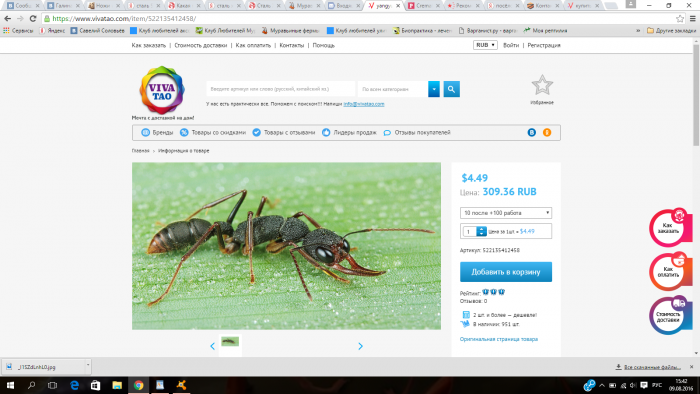 Здравствуйте! Обнаружил сайт , я так понимаю заказывают с таобао и доставляют по России. Так вот, там продаются муравьи (в основном Pachycondyla rufipes, Harpegnathos saltator и Pheidologeton diversus) по мягко говоря странным ценам - ОЧЕНЬ маленьким (цены видно на скрине, остальные цены похожи). Как думаете, стоит там покупать? Не обман? Может, кто покупал? И вообще, какие нюансы в заказах из Китая? Вот страницы товаров: , .